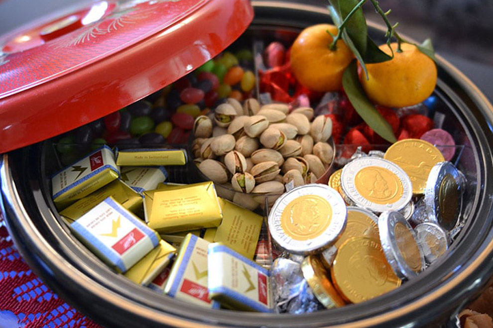 Salah satu makanan yang selalu ada saat Imlek adalah manisan segi delapan. Kotak bersekat-sekat berbentuk segi delapan ini diisi dengan berbagai makanan. Mulai manisan buah, permen, hingga kacang. Bukan sekedar camilan, ternyata manisan segi delapan ini punya makna khusus bagi masyarakat Tionghoa, lho.